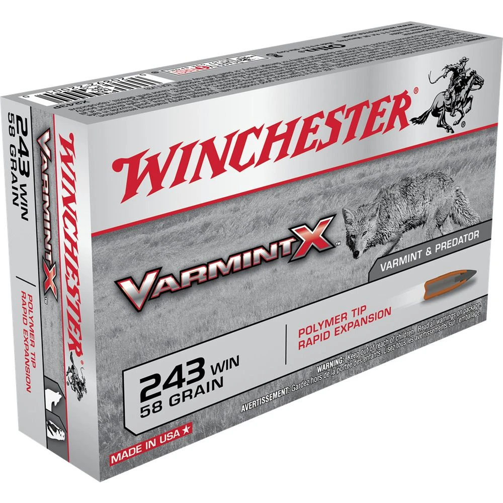 | Product Name | Winchester 243 WIN – 58 Grain Polymer Tip Rapid Expansion Ammo, 20-Round, X243P |